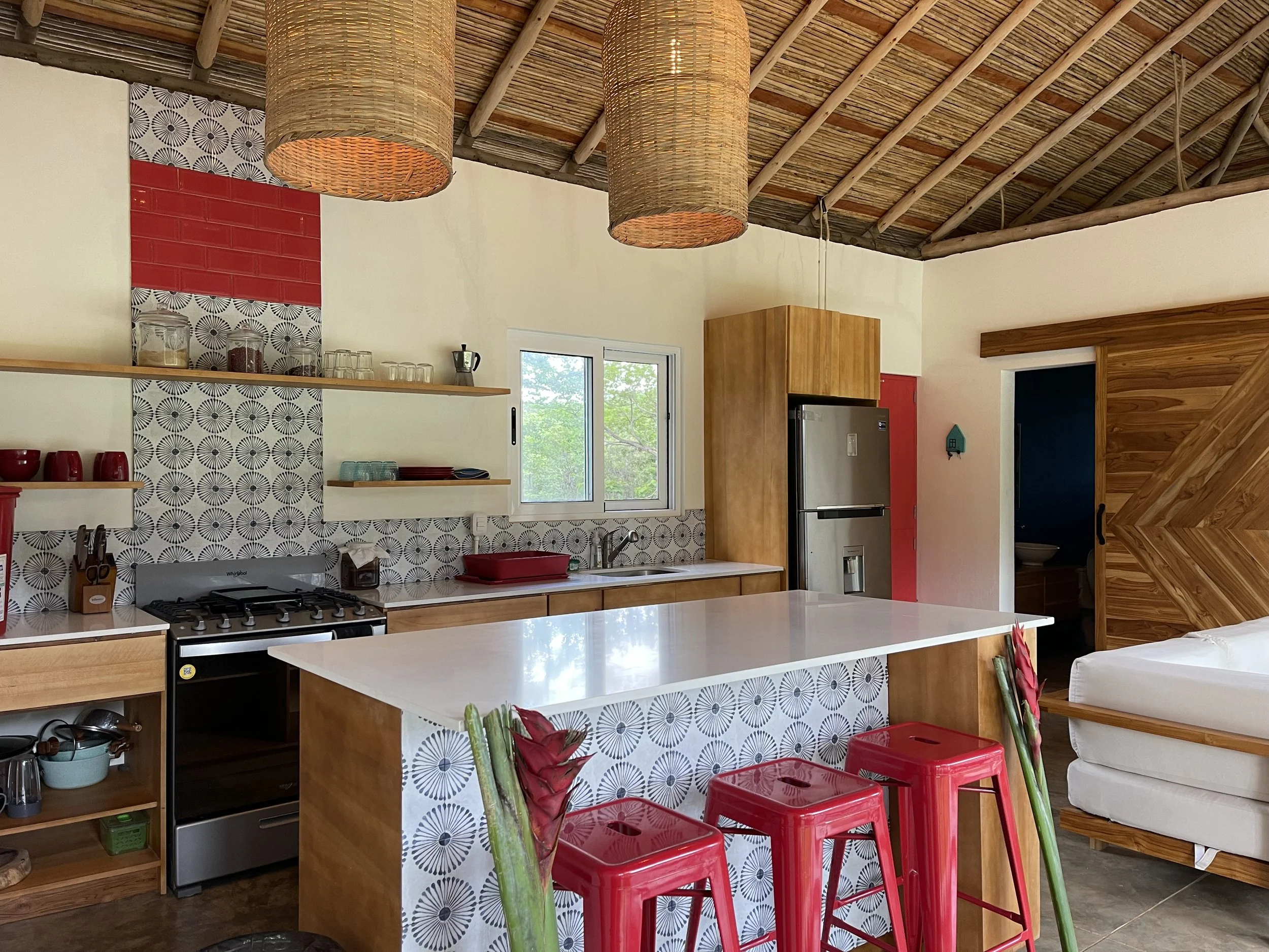 The Guest House is bright, modern, and beautifully appointed with the best locally crafted building materials available in Nicaragua. Inside you’ll find 2 ensuite bedroom/bathrooms and a spacious kitchen/living area with glass doors leading to your own private patio and garden.